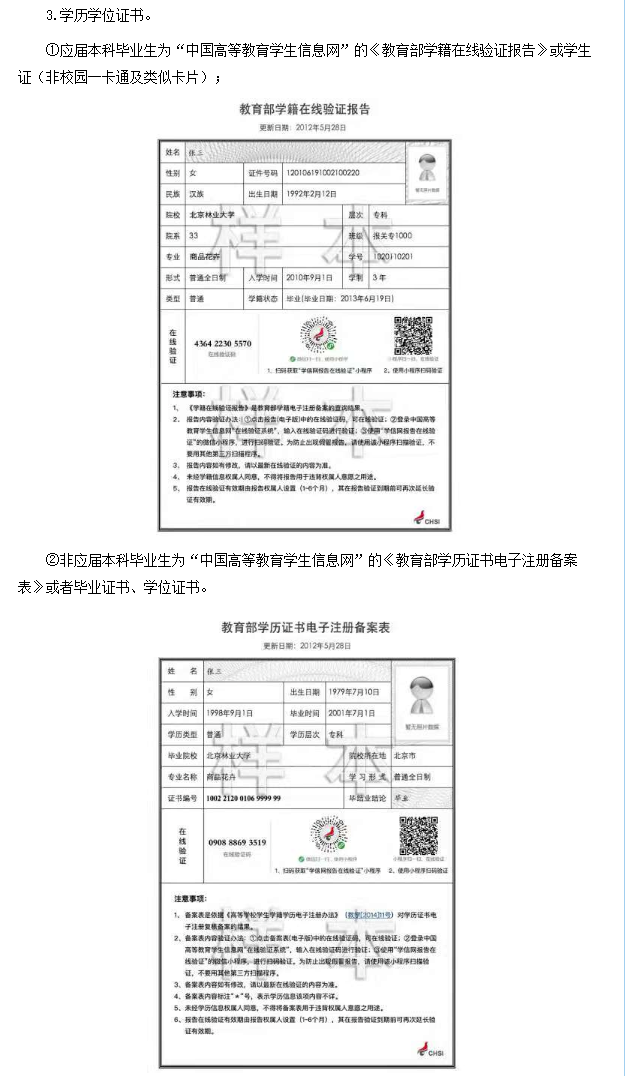2、学历学位证书(应届本科毕业生持学生证,自学考试和网络教育届时可本科毕业的考生须提供成绩单)。
