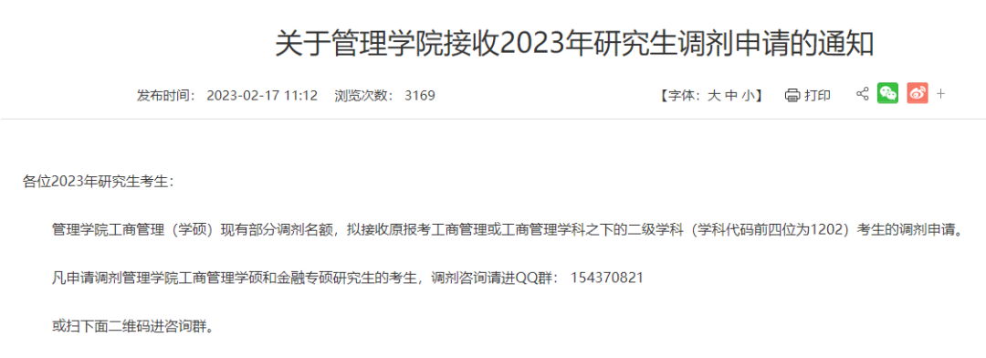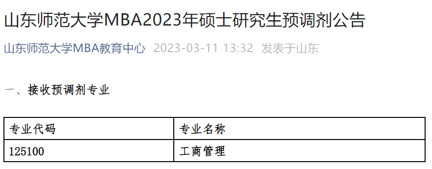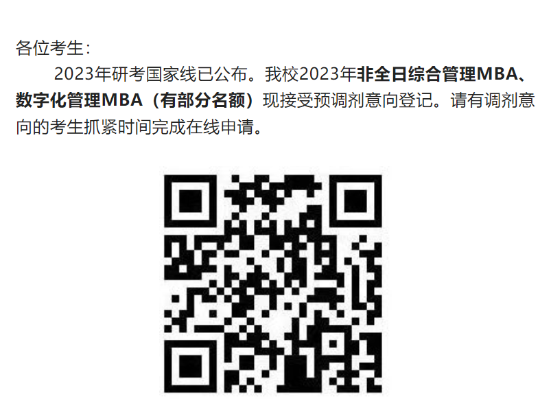 发布2023 MBA预调剂公告。