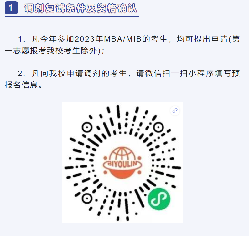 2023年MBA项目预调剂公告