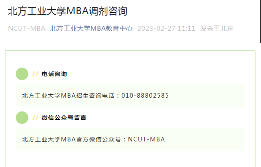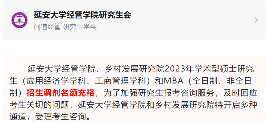 非全日制MBA招生咨询通道及预调剂公告