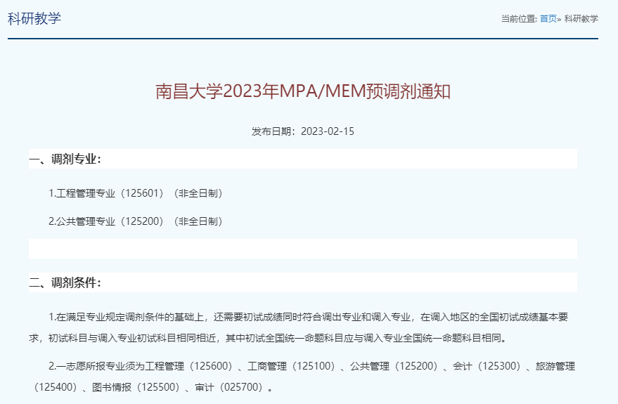 发布2023年MPA/MEM预调剂通知